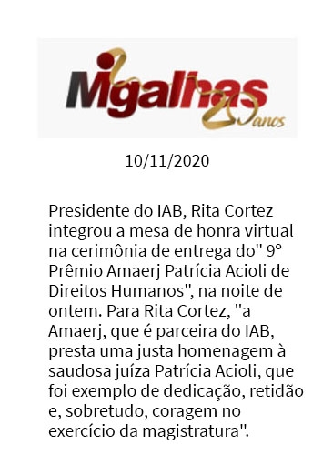 Início » IAB na imprensa » 9º Prêmio Amaerj Patrícia Acioli