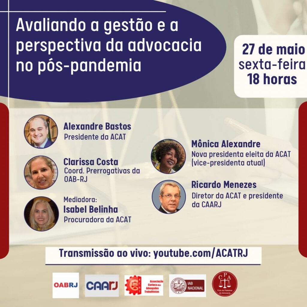 O evento acontece no canal do YouTube da ACAT-RJ.