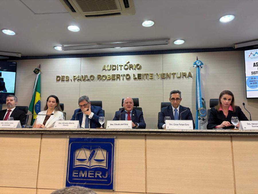 A mesa de abertura contou com a presença do diretor-geral da Emerj, desembargador Cláudio dell’Orto; do presidente do Fórum Permanente de Arbitragem da Emerj, desembargador Ricardo Alberto Pereira; do presidente do Fórum Permanente de Justiça Multiportas, Mediação e Justiça Restaurativa da Emerj, desembargador César Felipe Cury; do desembargador Eduardo Biondi; e da presidente da Comissão de Arbitragem da OAB/RJ, Juliana Loss de Andrade.