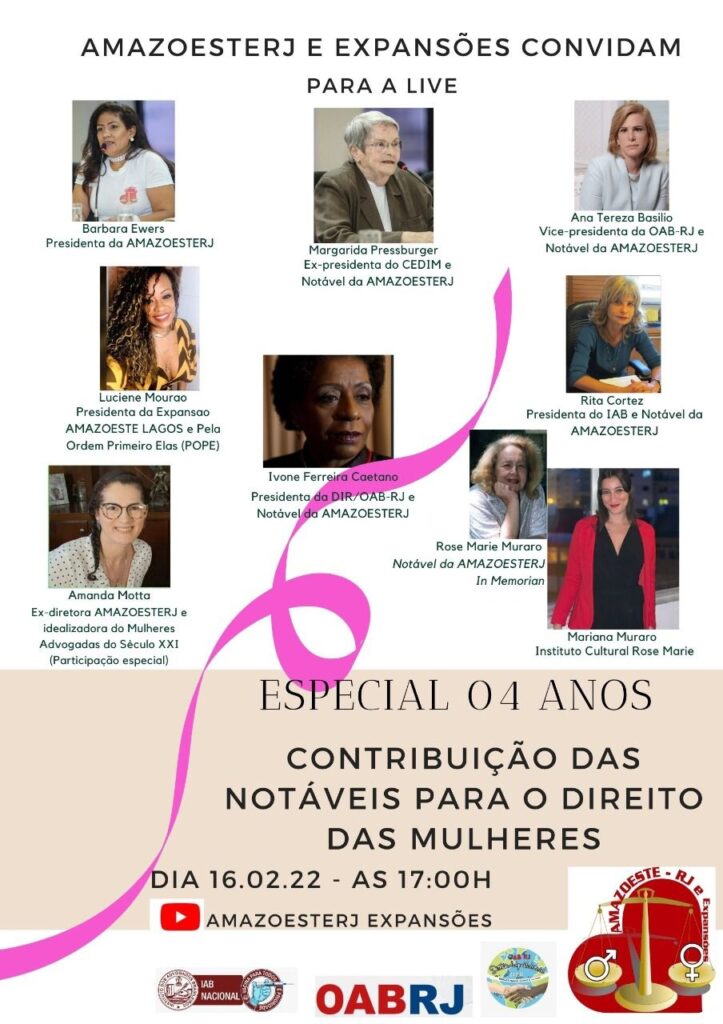 [AMAZOESTERJ E EXPANSÕES] Contribuição das Notáveis para o Direito das Mulheres
