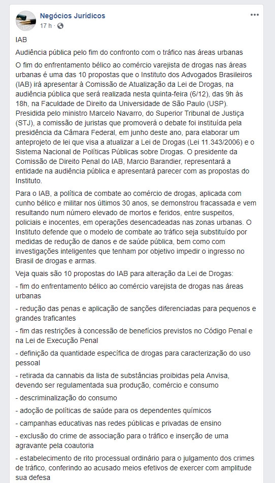 FONTE: Negócios Jurídicos – 05/12/2018