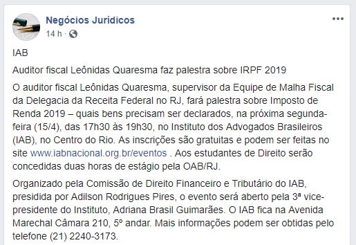 FONTE: Negócios Jurídicos – 10/4/2019