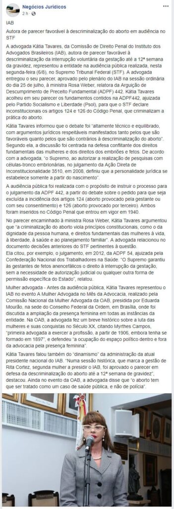 Início » IAB na imprensa » Autora de parecer favorável à descriminalização do aborto representa o IAB em audiência no STF