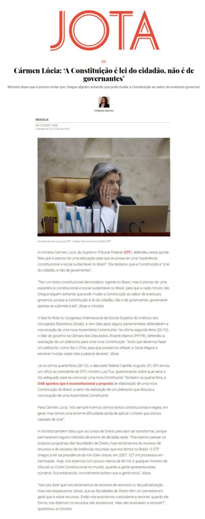Início » IAB na imprensa » Cármen Lúcia: ‘A Constituição é lei do cidadão, não é de governantes’