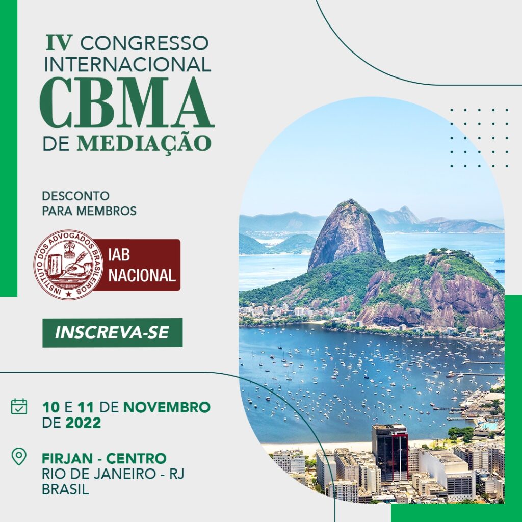 Garanta a sua participação no IV Congresso Internacional de Mediação, realizado pelo CBMA.