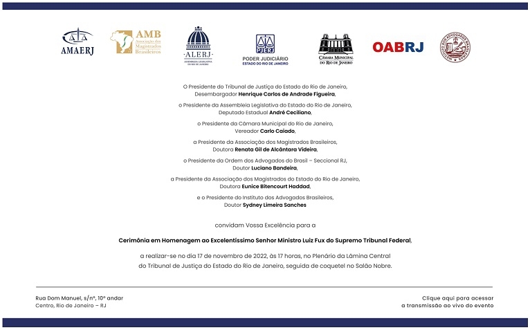 Cerimonia em Homenagem ao Excelentíssimo Senhor Ministro Luiz Fux do Supremo Tribunal Federal