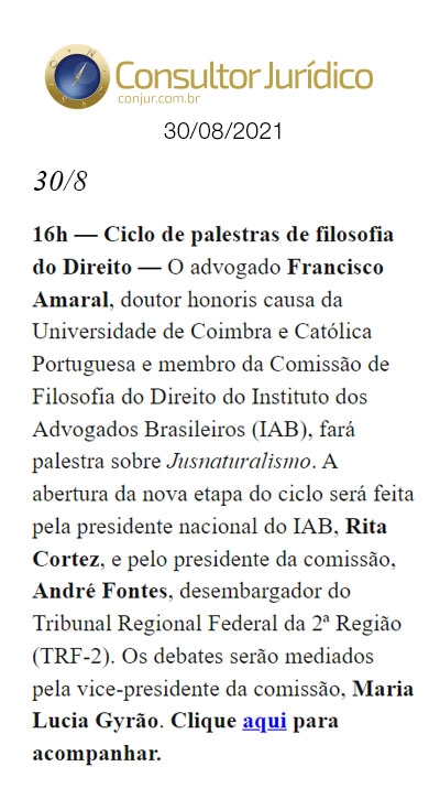 Início » IAB na imprensa » Ciclo de Palestras de Filosofia do Direito