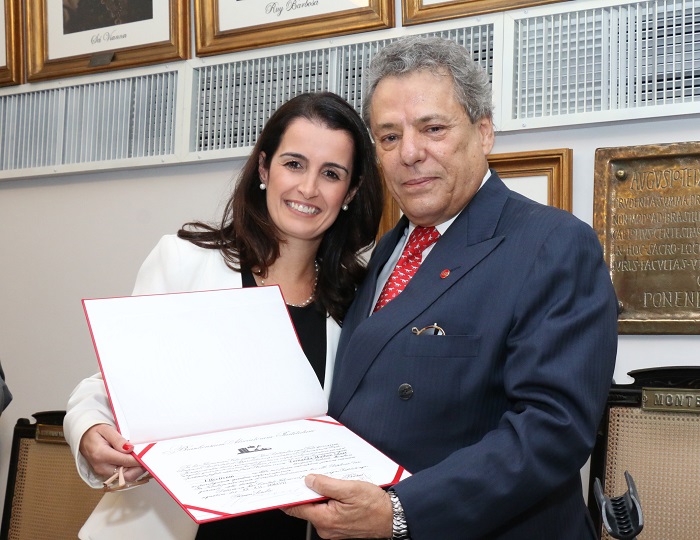 Na sessão solene, Técio empossou, como membro efetivo, Fernanda Maibon Sauer, que atua no Villemor Amaral Advogados e foi indicada por Hermano de Villemor Amaral Filho e pelo pai, João Guilherme Sauer, sócio do escritório e ex-vice-presidente do IAB na gestão de Benedito Calheiros Bomfim, no biênio 1994/1996. “Recomendada por Hermano de Villemor Amaral Filho, esse monstro sagrado da advocacia agraciado pelo IAB com a Medalha Teixeira de Freitas, e por seu pai, um belíssimo advogado que honra a profissão, será grande a sua responsabilidade”, disse Técio, após empossá-la, na presença da mãe, a médica Sônia Sauer.