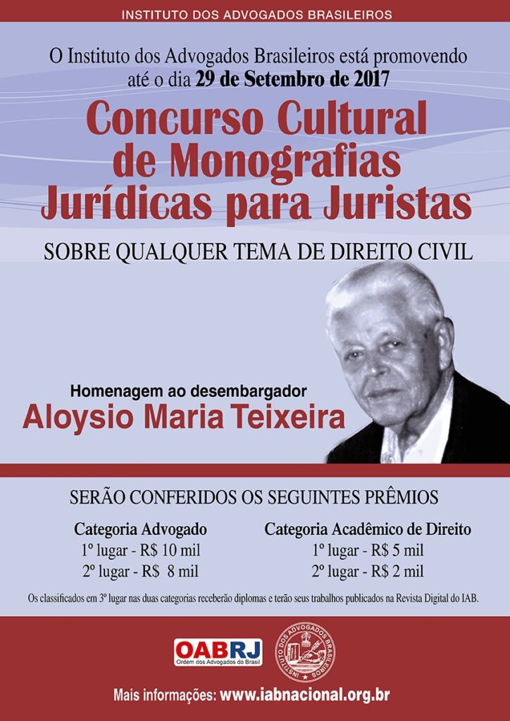Início » Eventos » Eventos Institucionais » Concurso Cultural de Monografias Jurídicas para Juristas – Homenagem ao desembargador Aloysio Maria Teixeira