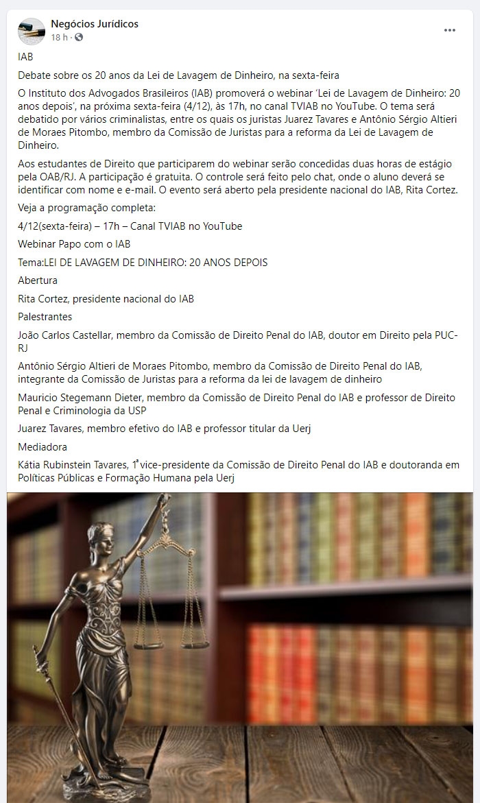Início » IAB na imprensa » Debate sobre os 20 anos da Lei de Lavagem de Dinheiro