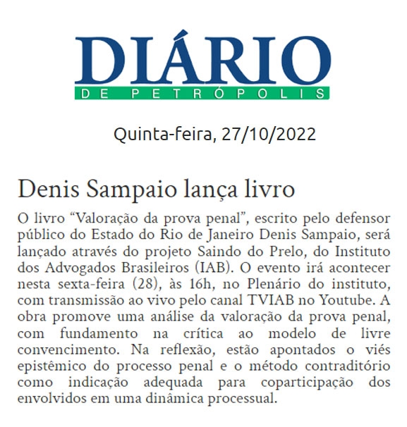 Início » IAB na imprensa » Denis Sampaio lança livro