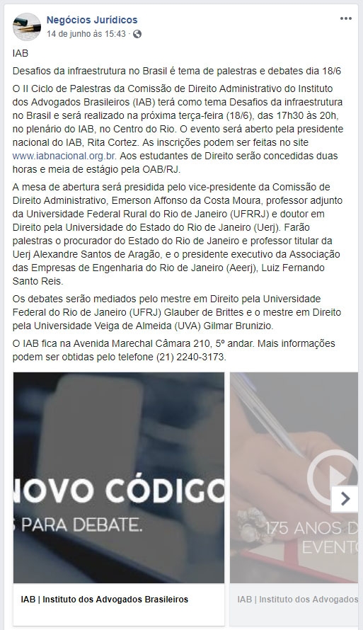 O IAB é o Instituto dos Advogados Brasileiros, entidade jurídica mais antiga do país, fundada em 1843.