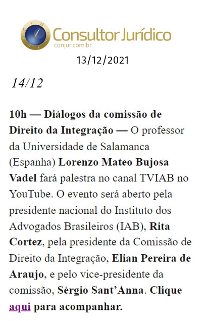 Início » IAB na imprensa » Diálogos da Comissão de Direito da Integração