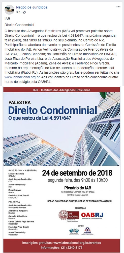 O IAB é o Instituto dos Advogados Brasileiros, entidade jurídica mais antiga do país, fundada em 1843.