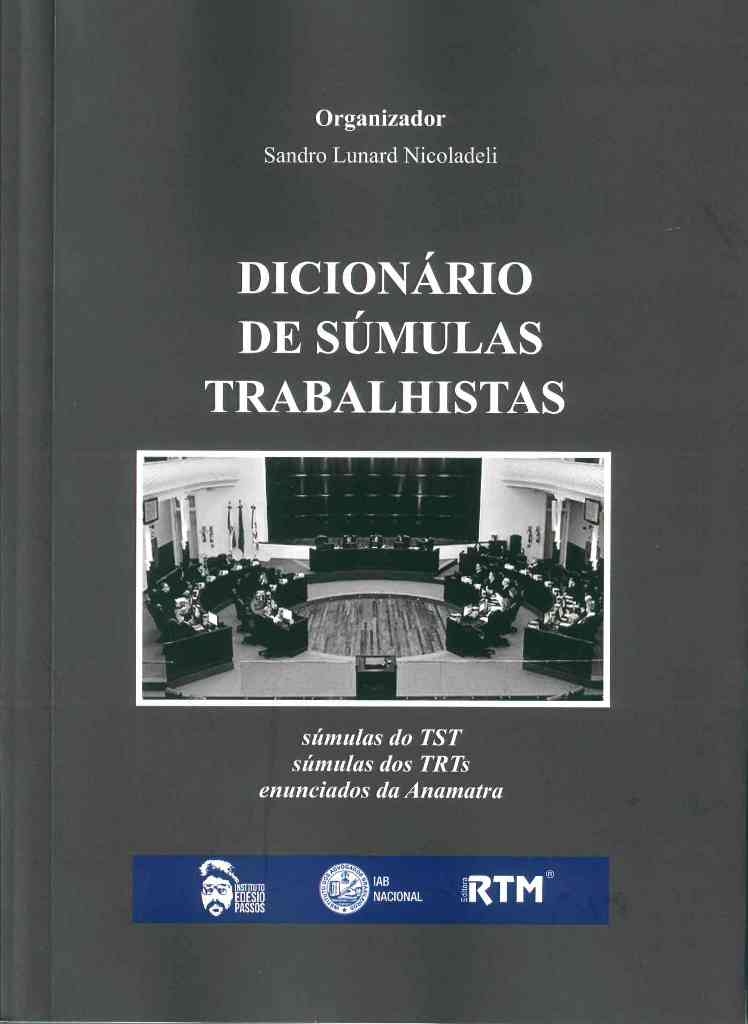 NICOLADELI, Sandro Lunard (org.). Dicionário de súmulas trabalhistas: súmulas do TST, súmulas dos tribunais regionais do trabalho, enunciados da Anamatra. Belo Horizonte: RTM, 2022.