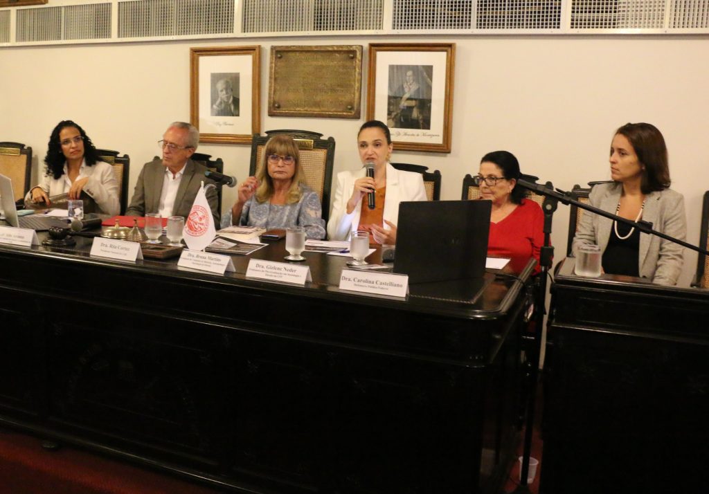 Da esq. para a dir., Luciana Simas, Aldo Arantes, Rita Cortez, Bruna Martins, Gizlene Neder e Carolina Castelliano