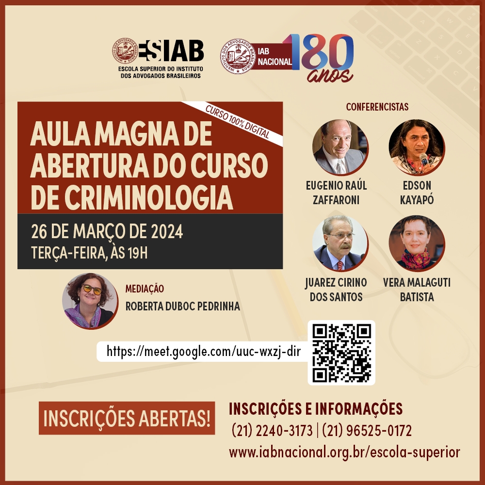 Início » Eventos » Eventos Institucionais » 2024 » Março 2024 » ESIAB | Aula Magna de abertura do curso de Criminologia