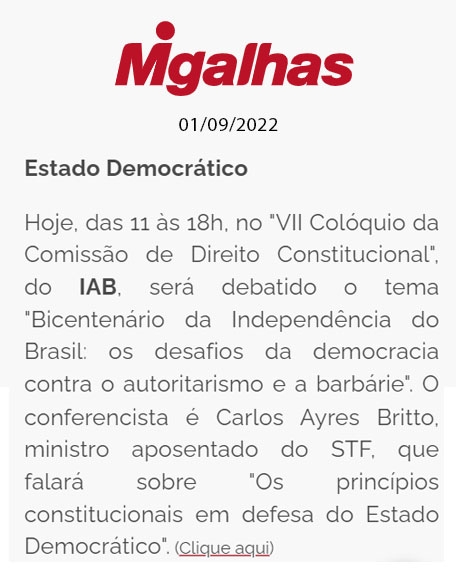 O IAB é o Instituto dos Advogados Brasileiros, entidade jurídica mais antiga do país, fundada em 1843.