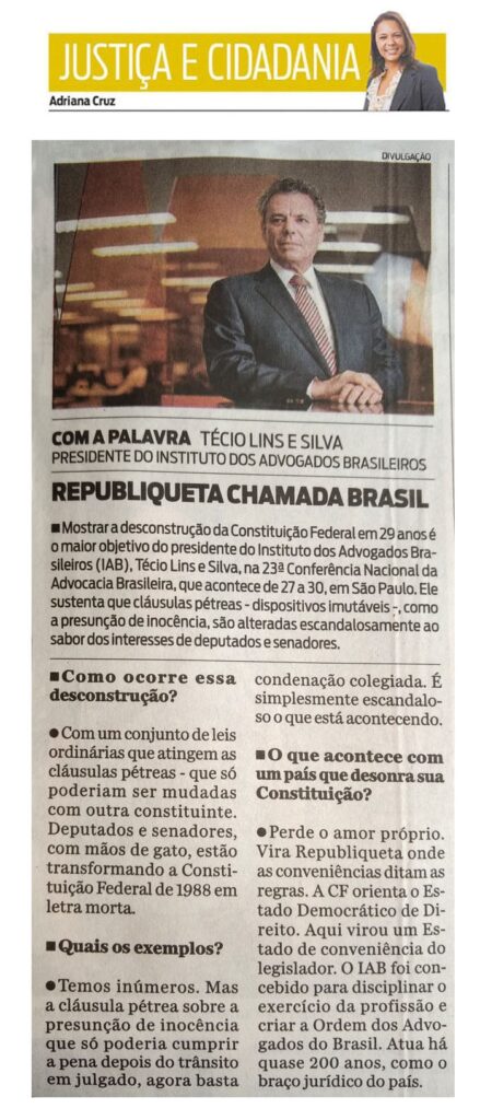 Início » IAB na imprensa » ‘Estão transformando a Constituição Federal de 1988 em letra morta’