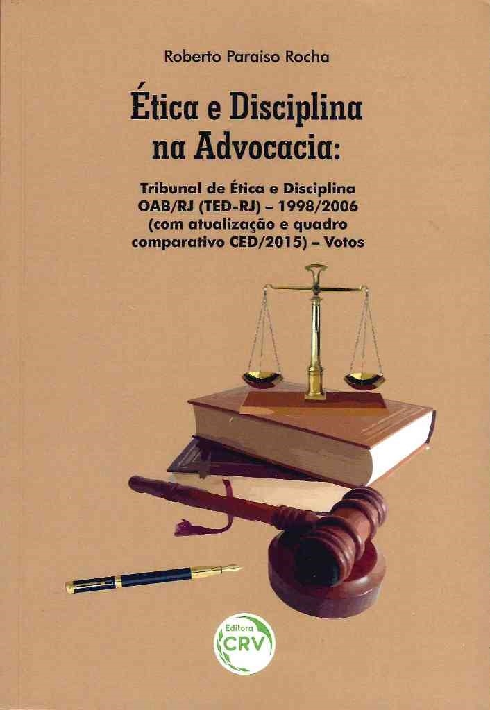 ROCHA, Roberto Paraiso. Ética e disciplina na advocacia: Tribunal de Ética e Disciplina OAB/RJ (TED-RJ) – 1998/2006 (com atualização e quadro comparativo CED/2015) – votos. Curitiba: CRV, 2019.