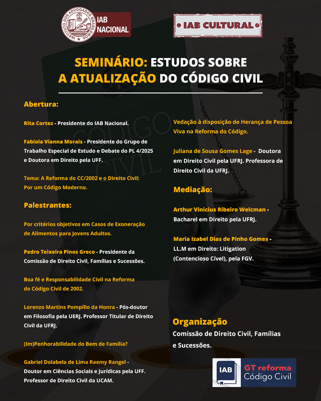 Seminário: Estudos sobre a Atualização do Código Civil – A Reforma do CC/2002 e o Direito Civil: Por um Código Moderno