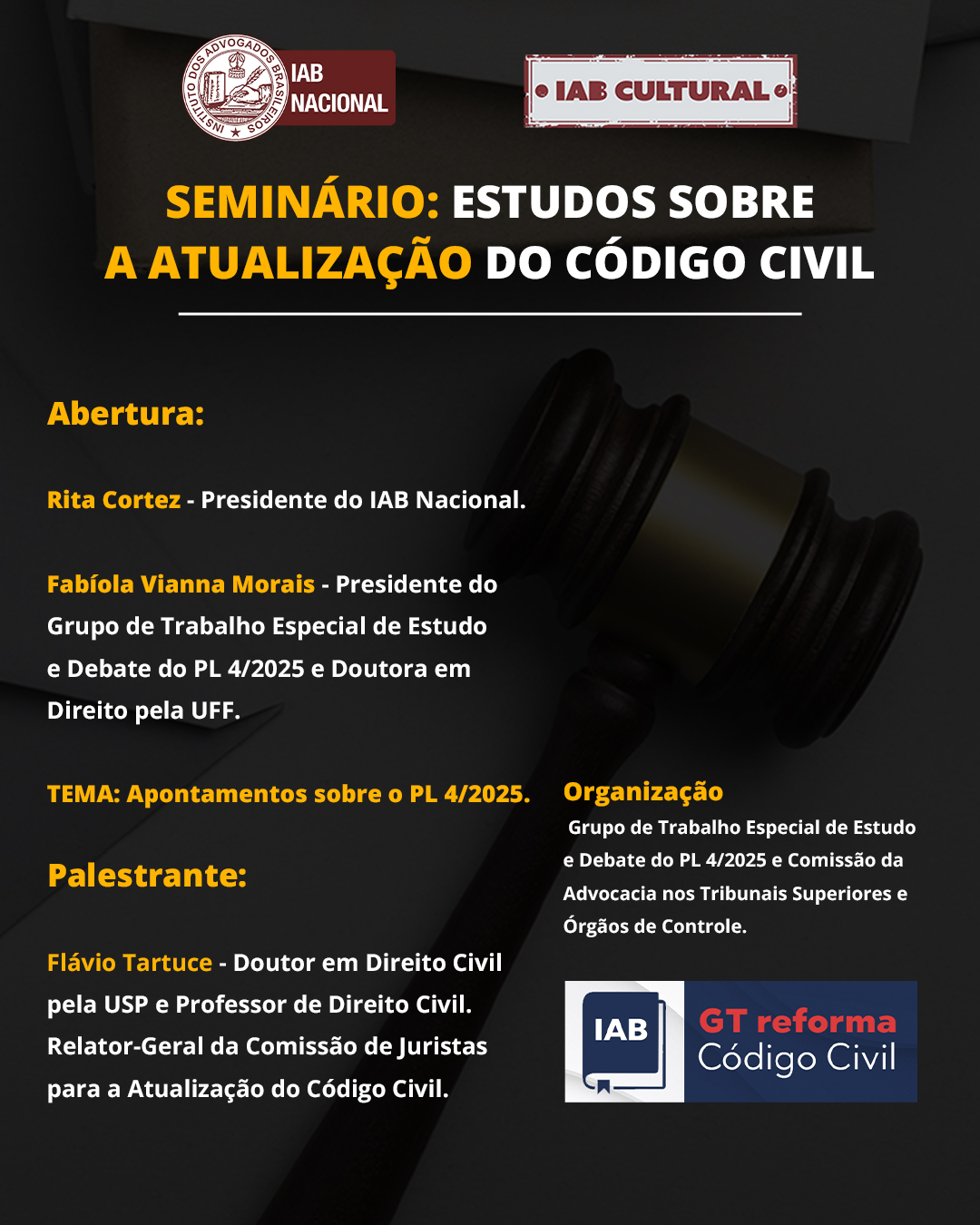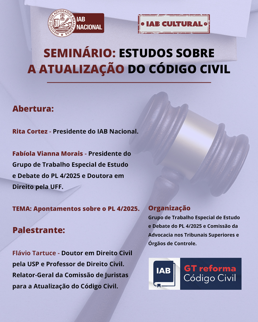 Início » Eventos » Seminário: Estudos sobre a Atualização do Código Civil – Apontamentos sobre o PL 4/2025