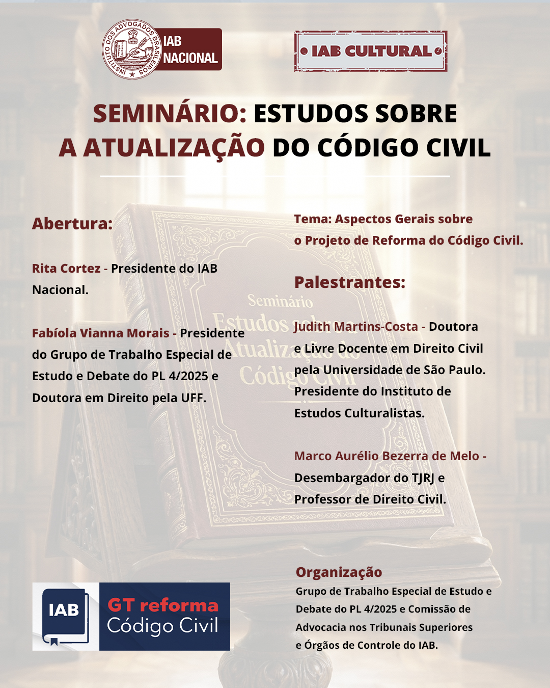 Seminário: Estudos sobre a Atualização do Código Civil – Aspectos Gerais sobre o Projeto de Reforma do Código Civil