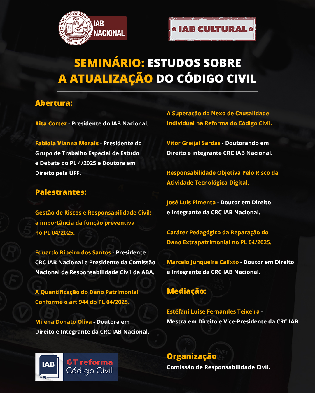 Seminário: Estudos sobre a Atualização do Código Civil – Tema:Exposição e debate de pontos relevantes sobre a Responsabilidade Civil no PL 04/2025