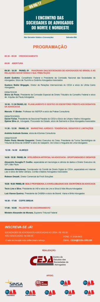 Início » Eventos » Eventos parceiros » I Encontro das Sociedades de Advogados do Norte e Nordeste