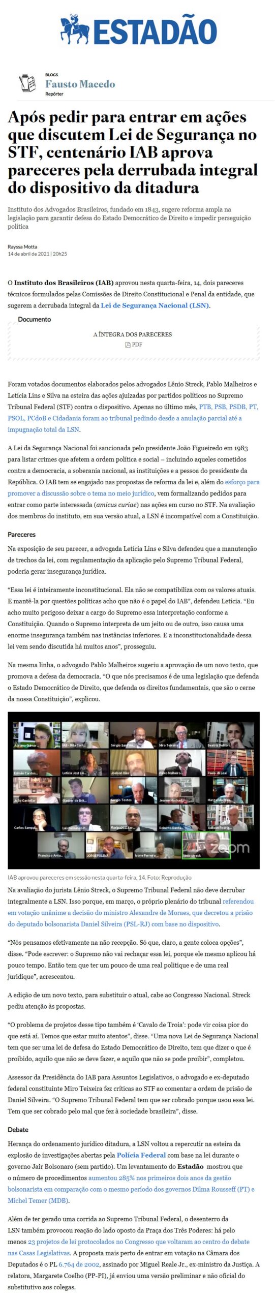 Início » IAB na imprensa » IAB aprova pareceres pela derrubada integral do dispositivo da ditadura