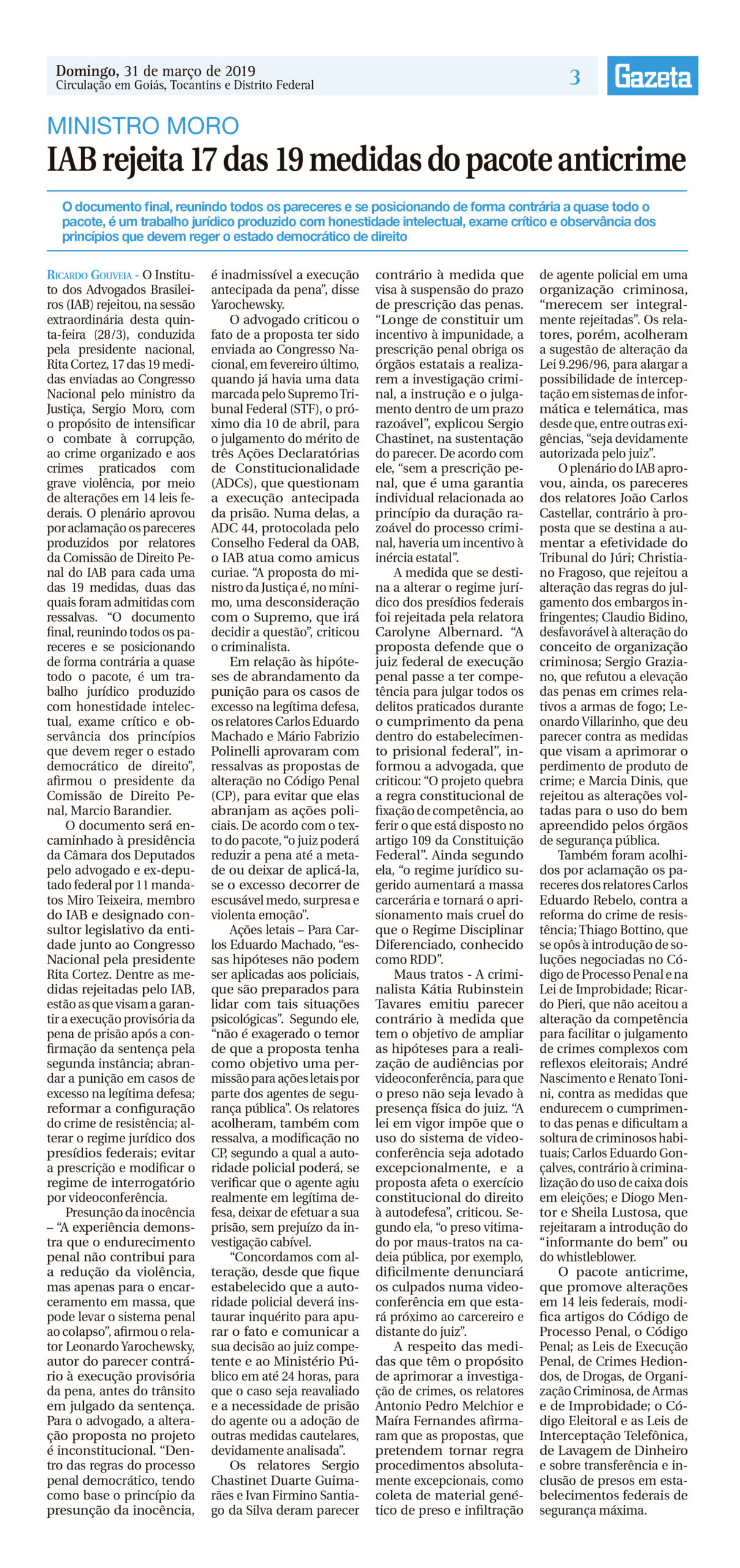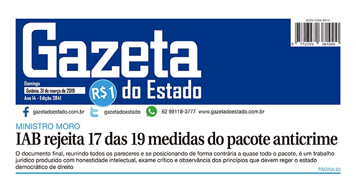 FONTE: Gazeta do Estado (GO) – 31/3/2019