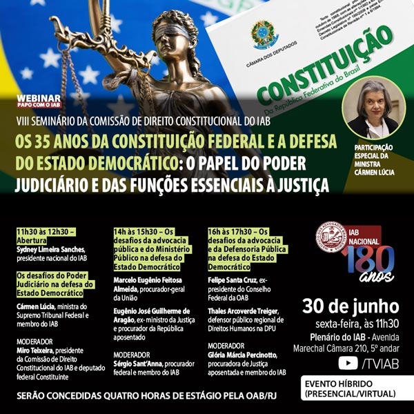 Os 35 anos da Constituição Federal e a Defesa do Estado Democrático: O papel do Poder Judiciário e das funções essenciais à Justiça.
