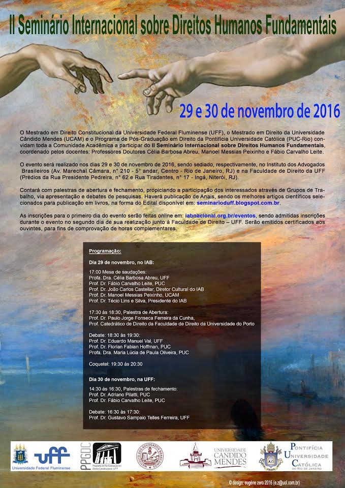 Dia 29 e 30 de novembro (confira horários no encarte). Locais: IAB e Faculdade e Direito da UFF