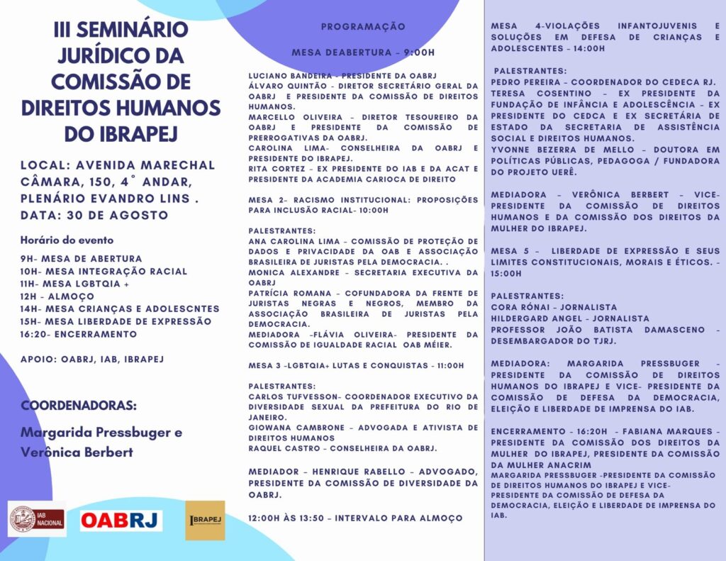 Início » Eventos » Eventos parceiros » 2022 Parceiros » Agosto » III Seminário Jurídico da Comissão de Direitos Humanos do IBRAPEJ