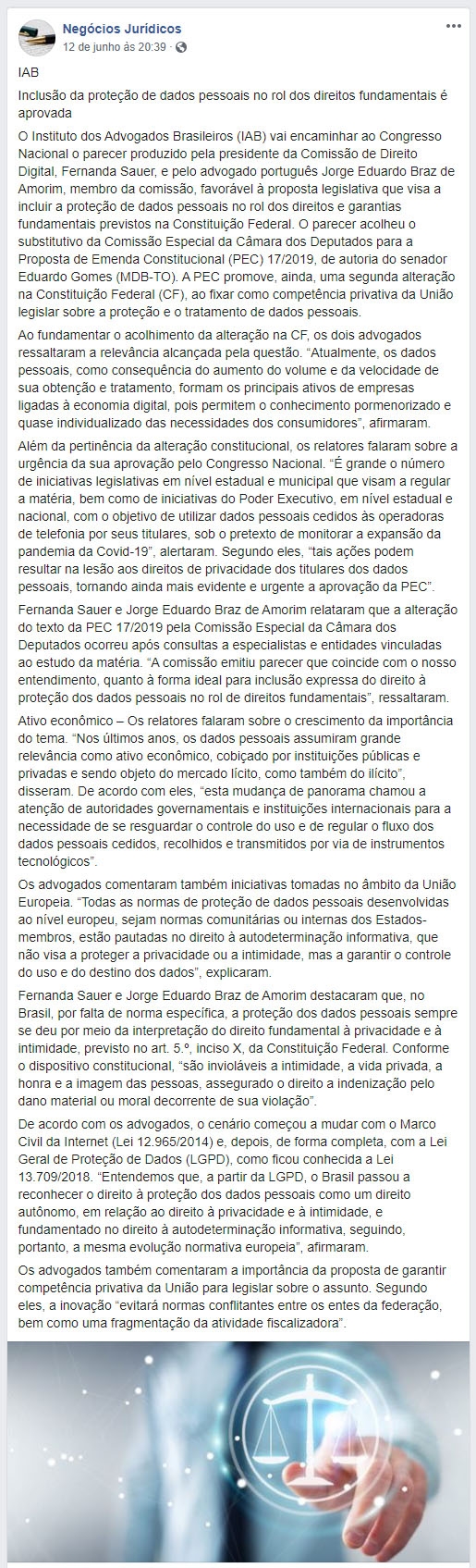 Inclusão da proteção de dados pessoais no rol dos direitos fundamentais é aprovada pelo IAB