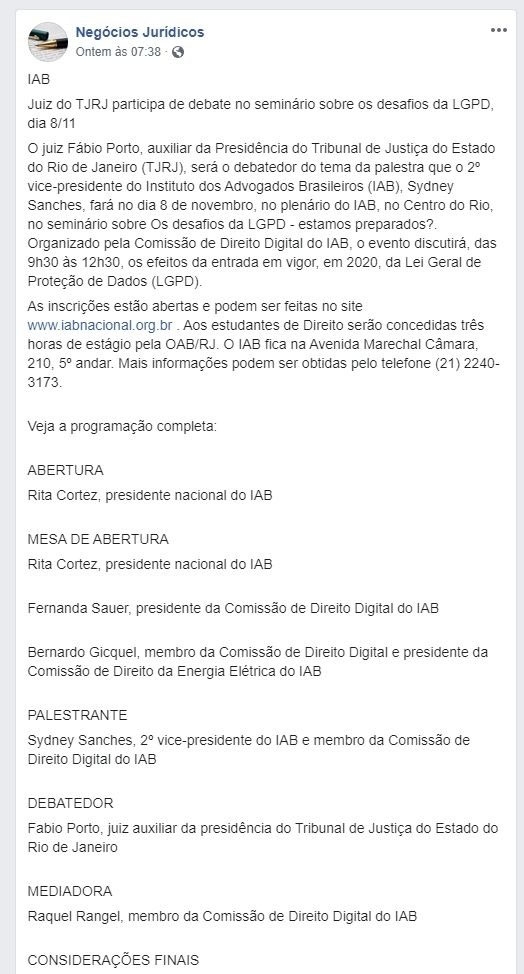 Início » IAB na imprensa » Juiz do TJRJ participa de debate no seminário sobre os desafios da LGPD