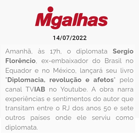 Início » IAB na imprensa » Lançamento do livro “Diplomacia, revolução e afetos” do diplomata e ex-embaixador Sergio Florêncio