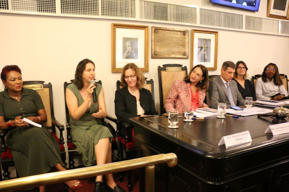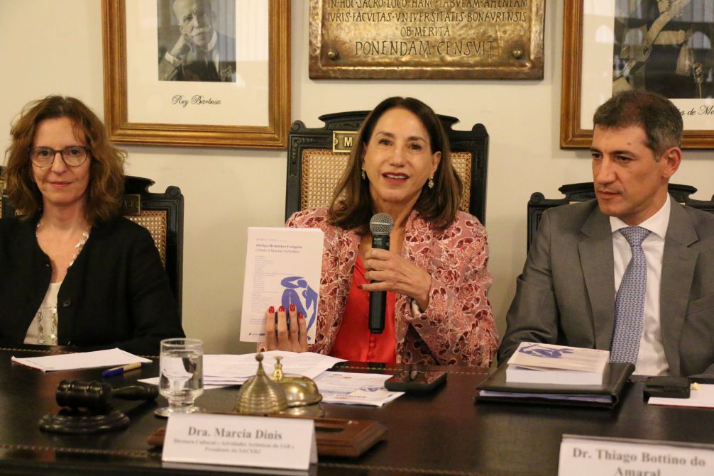 Diretora Cultural e de Atividades Artísticas do IAB, Marcia Dinis ressaltou que a publicação não é apenas uma homenagem afetiva: “O livro toma a Simone como uma referência intelectual e ética”. A advogada é a organizadora da obra e falou sobre a diversidade temática dos artigos, que incluem temas como racismo estrutural, proteção de dados no sistema de justiça e controle internacional de direitos humanos. “São 30 autores que escrevem com uma competência e ineditismo que impressionam”, afirmou.