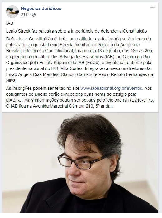 Início » IAB na imprensa » Lenio Streck faz palestra sobre a importância de defender a Constituição
