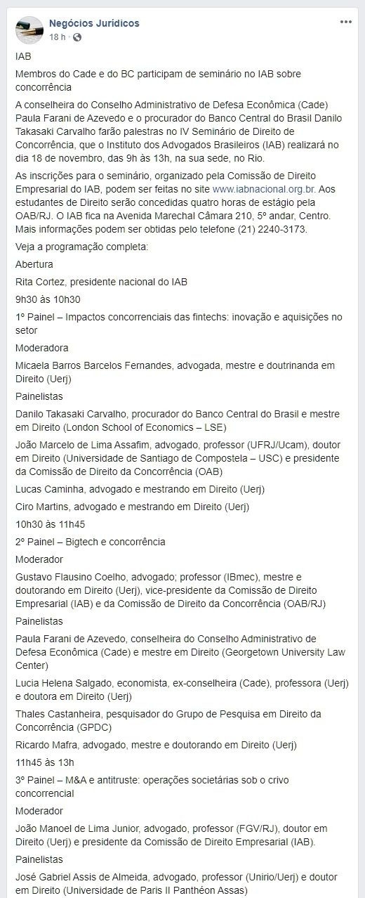 Início » IAB na imprensa » Membros do Cade e do BC participam de seminário no IAB sobre concorrência