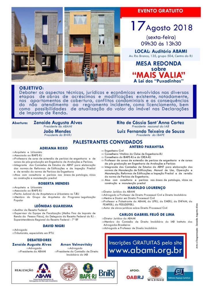 Início » Eventos » Eventos parceiros » Mesa Redonda sobre “Mais Valia” A Lei dos “Puxadinhos”