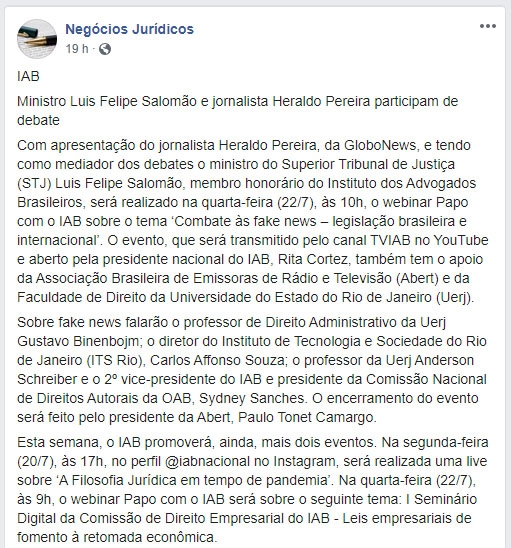 FONTE: Negócios Jurídicos – 20/07/2020