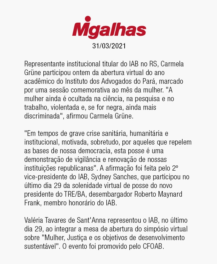 Início » IAB na imprensa » Mulher, democracia e desenvolvimento sustentável