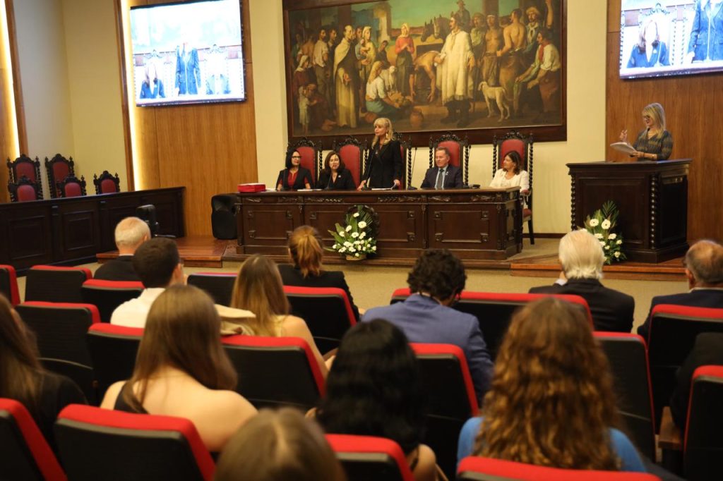 Além de dirigir a Faculdade de Direito da UFRGS, Ana Paula Motta Costa é líder de projetos de pesquisa e leciona disciplinas ligadas ao Direito Penal e à Criminologia. Em sua fala, a doutora pela Pontifícia Universidade Católica do Rio Grande do Sul (PUC/RS) sublinhou a gratidão pelo apoio recebido na busca pelos seus objetivos: “Tenho um profundo senso de responsabilidade social, com uma vida marcada pela indignação diante das violações de direitos e, com isso, o compromisso de tentar fazer algo sobre a nossa realidade”.