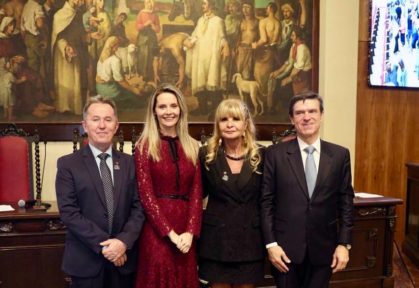 Presidente nacional do IAB, Rita Cortez agradeceu aos representantes institucionais da entidade no estado gaúcho. Todos presentes na solenidade, Paulo Joel Bender Leal, também diretor de Biblioteca do Instituto, Pedro Mauricio Pita Machado e Kalin Cogo Rodrigues, que organizou as homenagens, receberam os cumprimentos da advogada pelo empenho exercido.