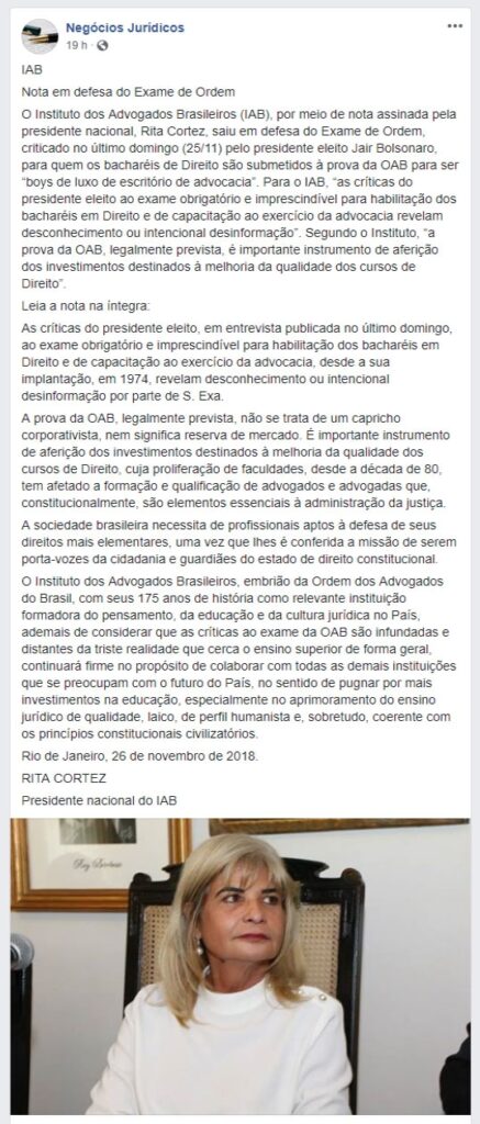 Início » IAB na imprensa » Nota em defesa do Exame de Ordem
