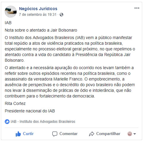 Início » IAB na imprensa » Nota sobre o atentado a Jair Bolsonaro