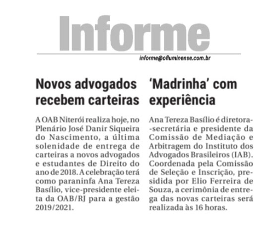 Início » IAB na imprensa » Novos advogados recebem carteiras Coluna Informe