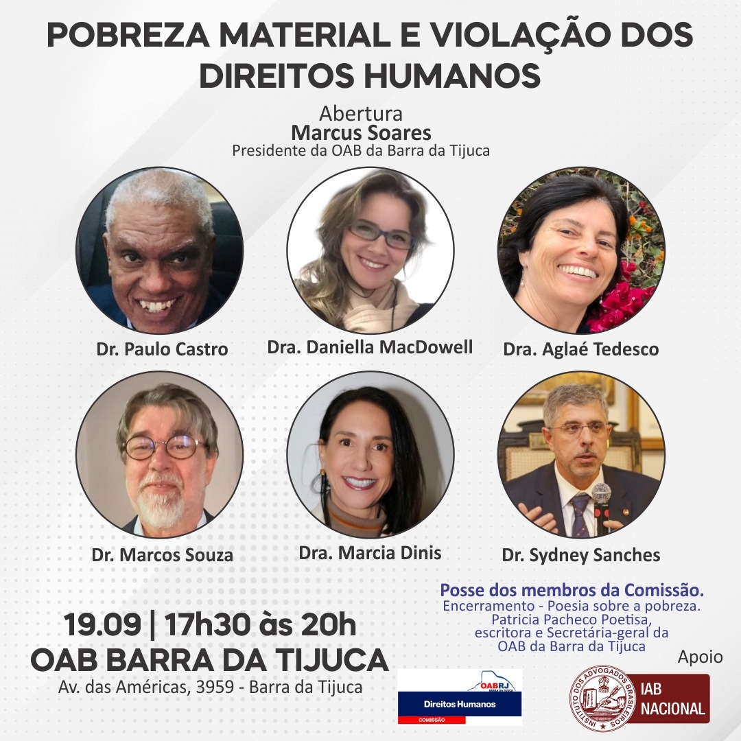 Início » Eventos » Eventos parceiros » 2022 Parceiros » Setembro » [OAB – Barra da Tijuca] Pobreza Material e Violação dos Direitos Humanos