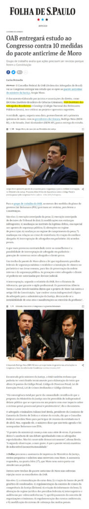 Início » IAB na imprensa » OAB entregará estudo ao Congresso contra 10 medidas do pacote anticrime de Moro